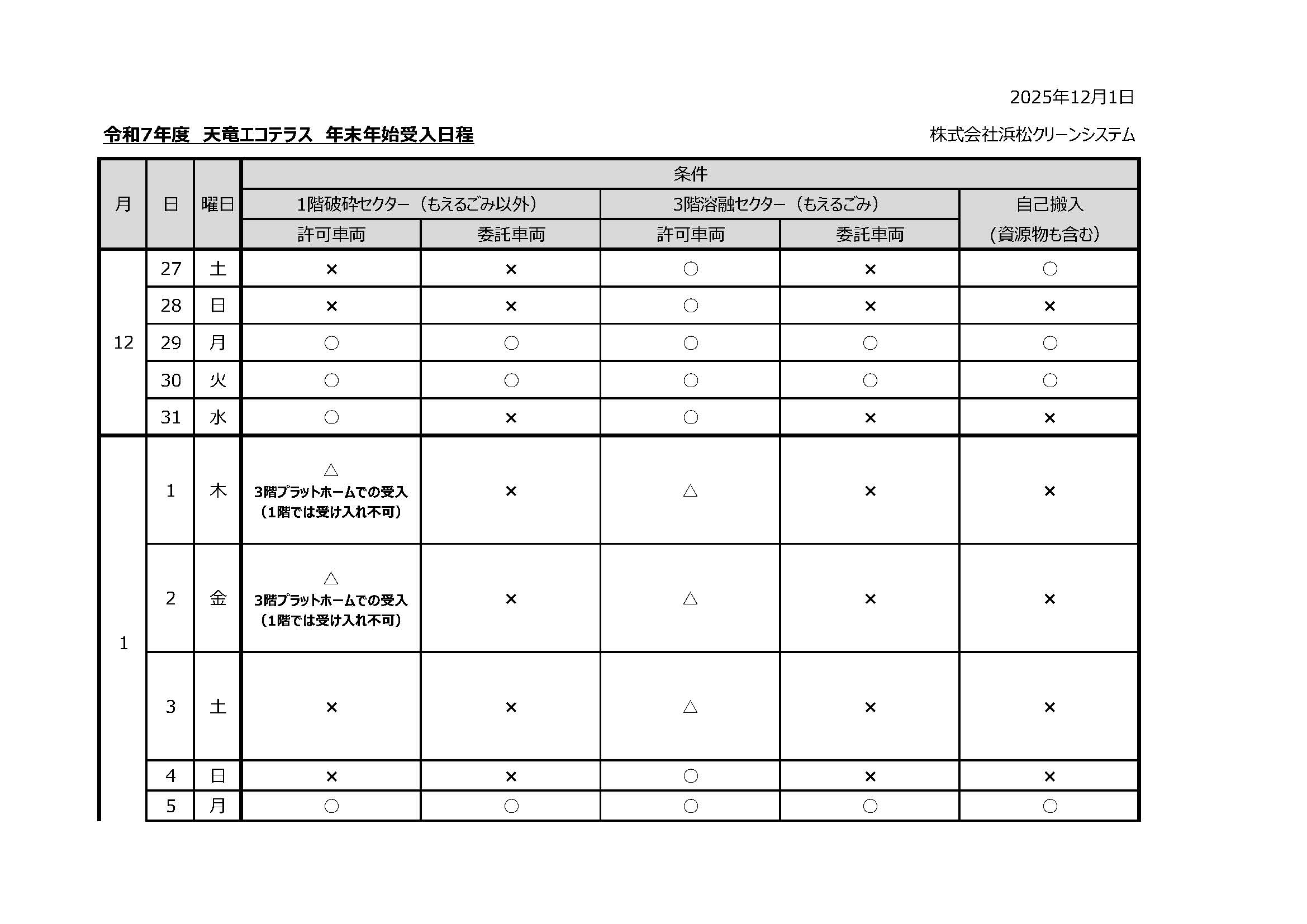 2025_年末年始_251021-令和7年度 天竜エコテラス 年末年始受入日程_最終_ページ_1